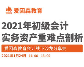- 為幫助學員掌握會計實務的重難點,提升備考過關率,2021年1月24日,愛因森教育將在大悅城校區(qū)為在讀會計班所有同學舉辦2021年初級會計實務資產的重難點剖析線下...