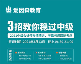 - 2021年3月13日晚19:30來愛因森教育在線直播間,學霸級講師為您360°解析2021年的考情分析,從備考策略、考點及重難點幫你層層攻破,助你一次性穩(wěn)過中級...