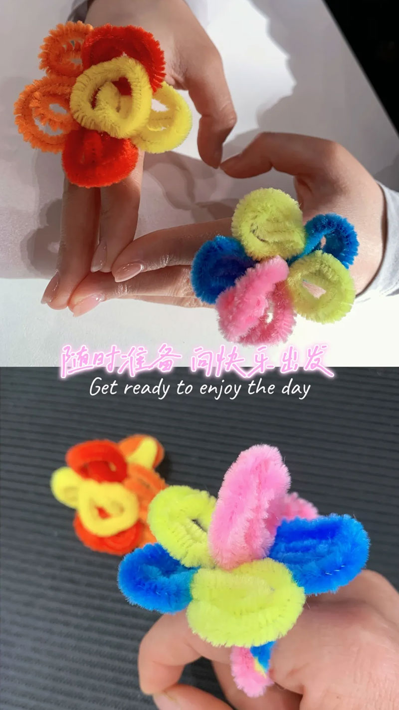 潤城校區的女神們,將五彩絨線巧妙的纏繞編織成一片片美麗的花瓣,一枚枚漂亮的戒指花誕生了。大家戴上自己親手制作的戒指花,內心充滿自信與感動。