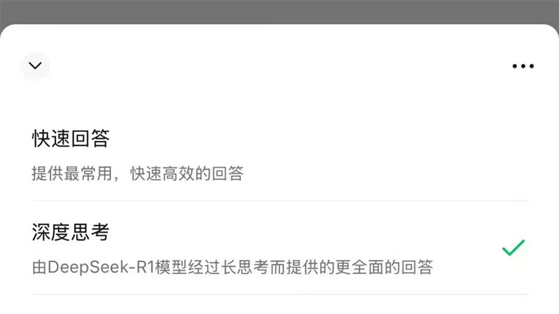 2月16日消息,微信正在灰測接入DeepSeekR1模型,被選中的微信用戶,可以在對話框頂部搜索入口看到“AI搜索”的字樣,可以選擇混元大模型和DeepSeek R1模型。