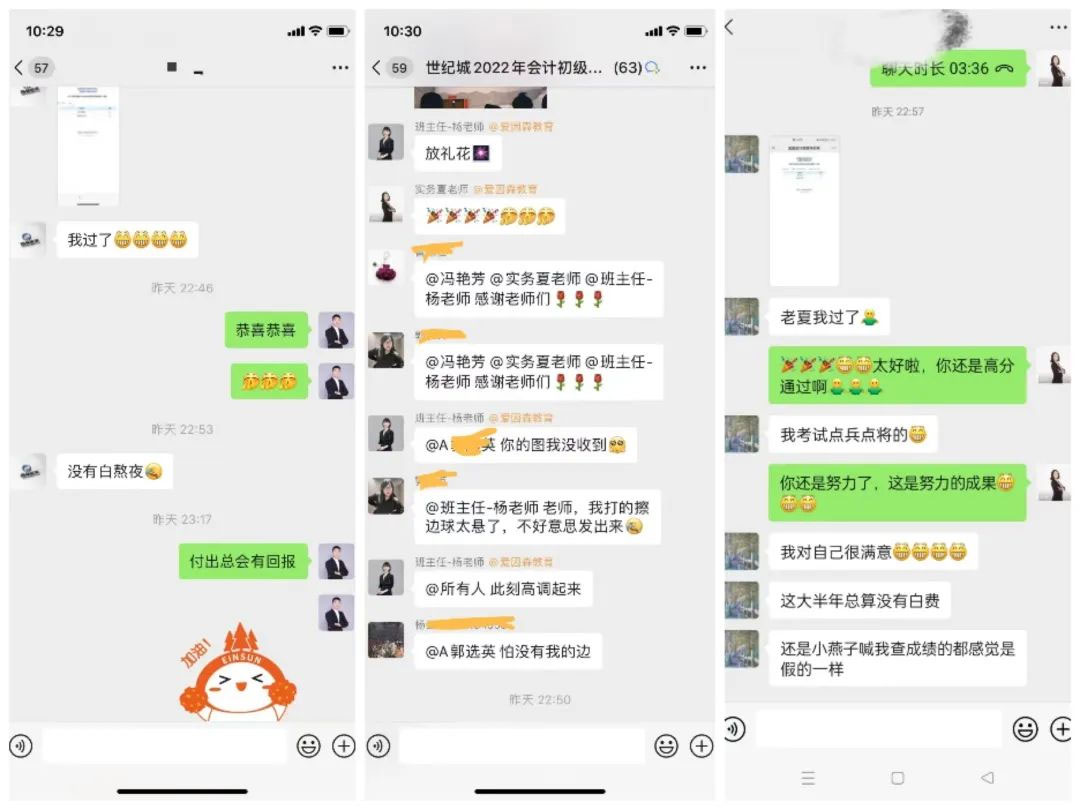 相信拿到高分的學員,都和小編此刻的心情一樣,首先最最最最最最想感謝的就是愛因森的老師們,在今天這個對于“會計人”而言,重要的日子里,各校區都紛紛收到學員好評,一起來看看吧!